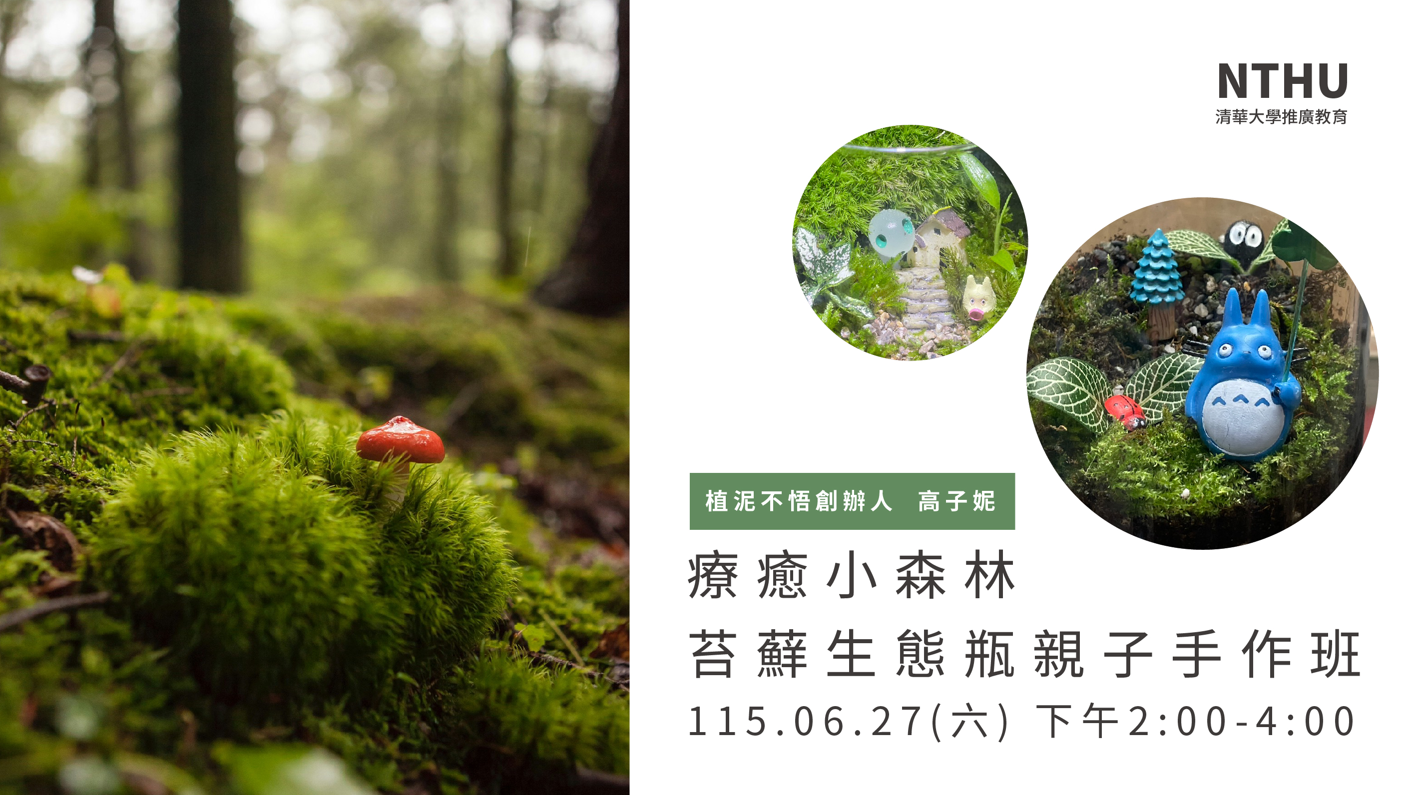 帶孩子一起探索微型自然的奧妙!本課程將帶領親子透過簡單有趣的方式,製作專屬的苔蘚生態瓶,讓大自然的小世界住進你的家中。課程適合大小朋友一同參與,既能學習生態知識,又能培養親子情感。