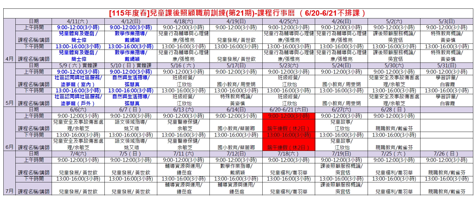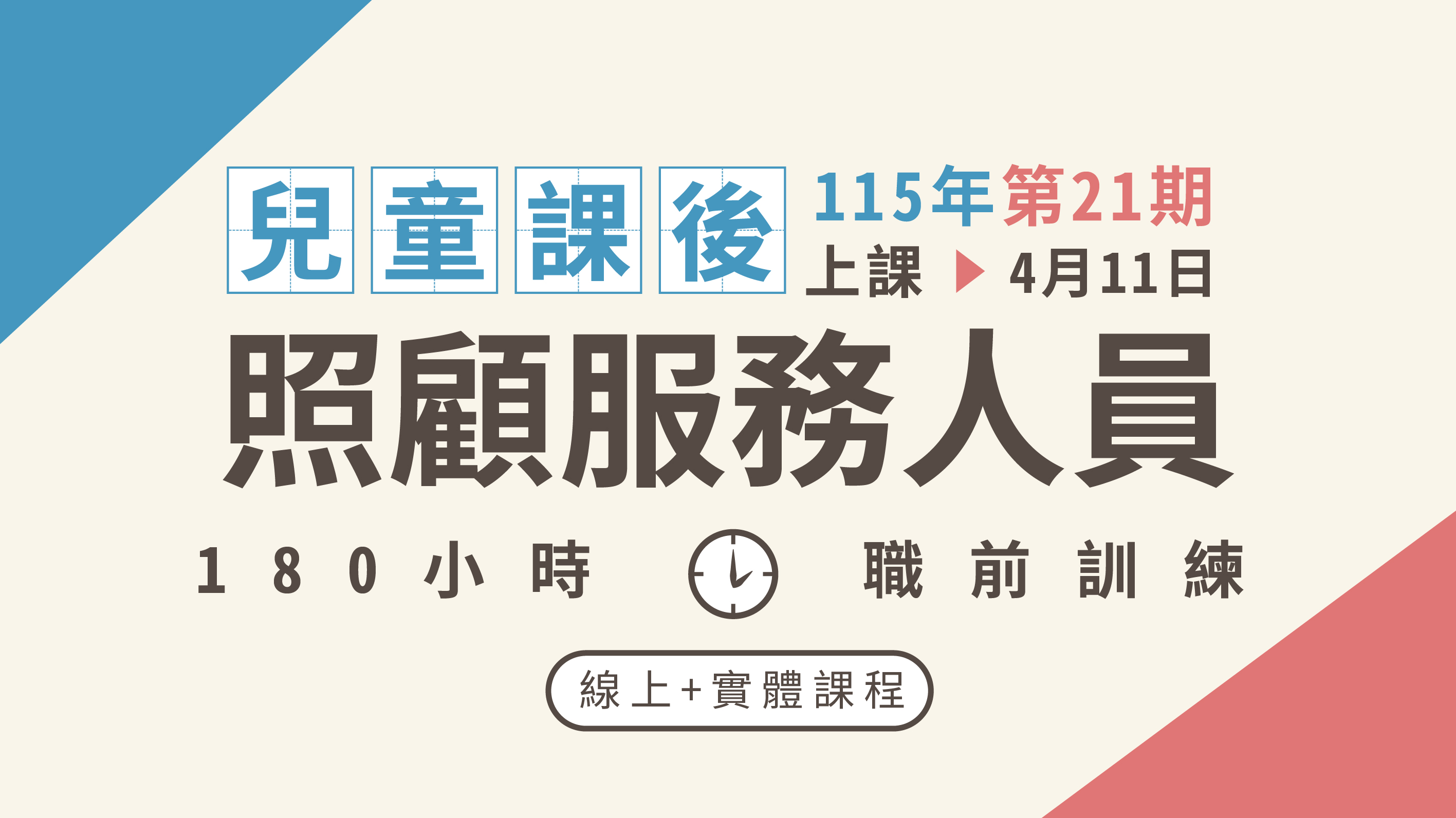 兒童課後照顧服務人員180小時職前訓練-第21期